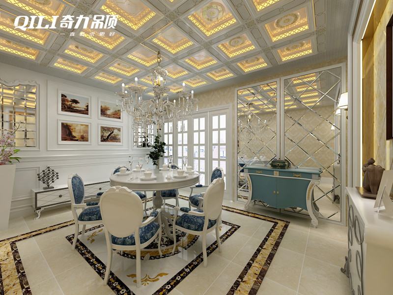 靈活性是餐廳這個(gè)空間的一個(gè)主要特點(diǎn),可以使用懸掛造型吊燈來下壓空間,增加餐廳情趣,或選擇用燭光來渲染空間。
